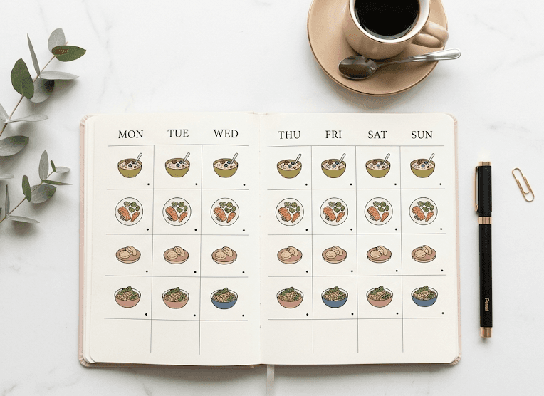 Nie. Sama wybierasz pory posiłków. Kluczowy jest prosty schemat.